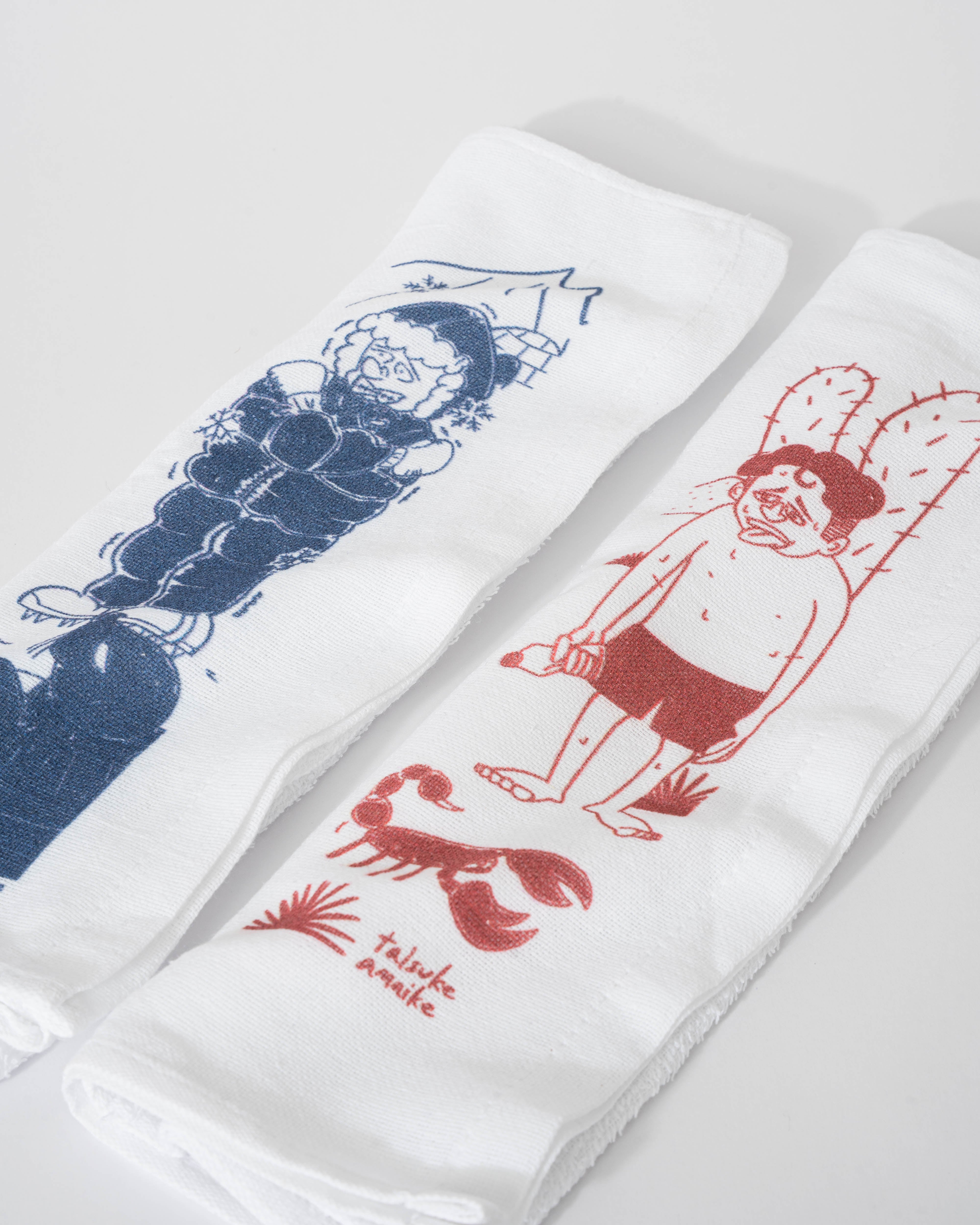 赤・青の2色展開でそれぞれ別のイラストがプリントされています。